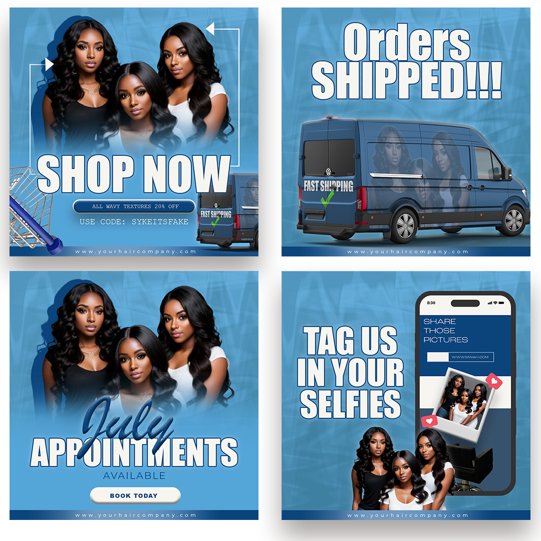 Our custom templates are ideal for online platforms such as Instagram, Facebook, or Twitter. Simply submit your images, desired message, and preferred color scheme.