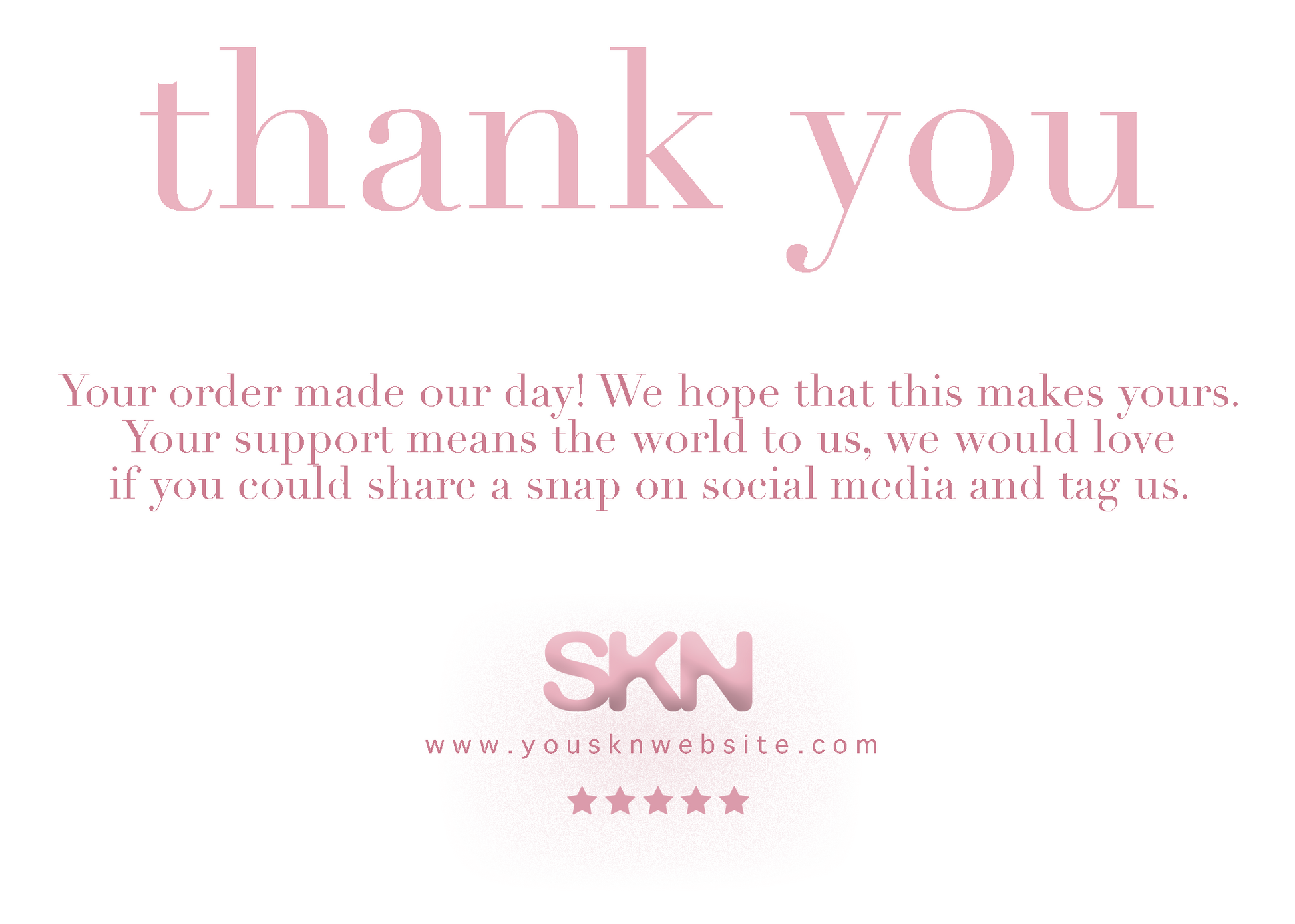 This product, exclusively designed by SOM2, is ideal for clients who ship tangible goods and desire to express their gratitude to their customers. Please note that we do not handle the printing process, so you will need to upload and purchase the physical cards from a reputable printing company. Simply submit your images, desired message, and preferred color scheme.